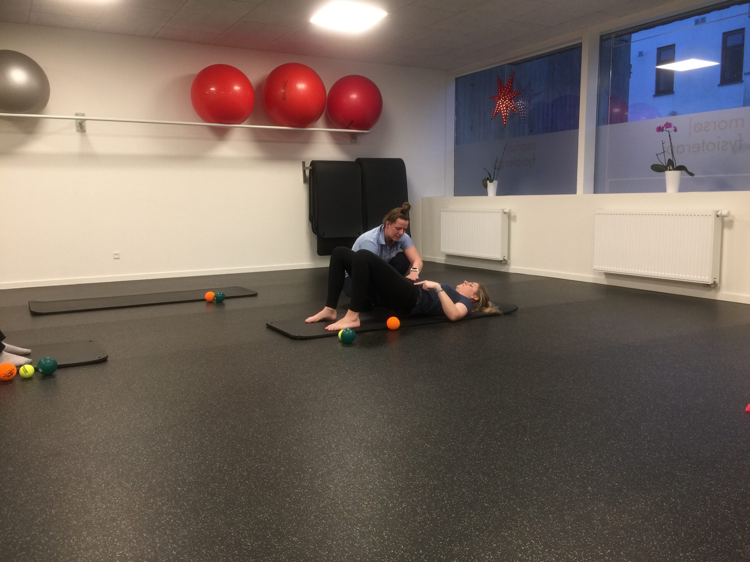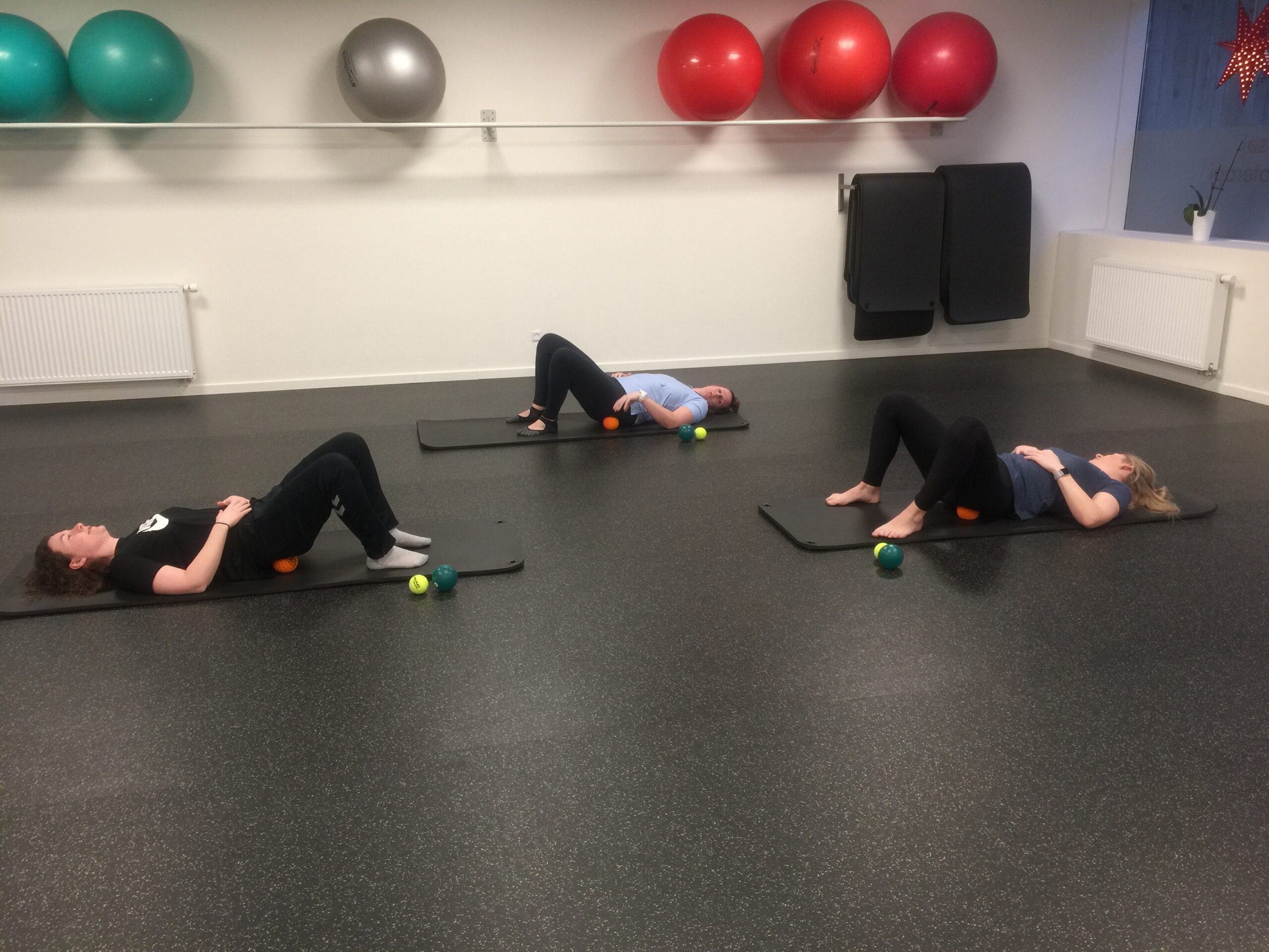 Mange øvelser er med egen kropsvægt, men vi bruger også forskelligt træningsudstyr, såsom elastikker, foamroller og forskellige bolde.
